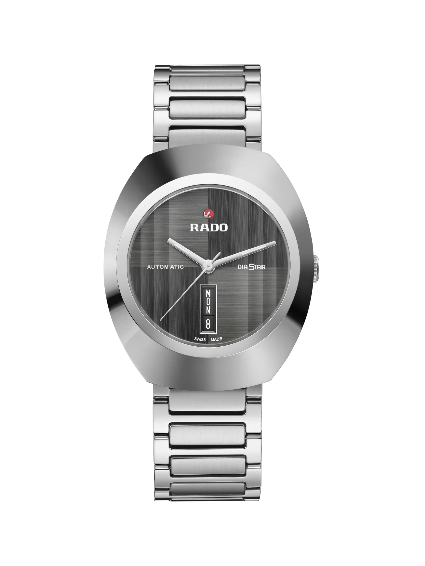 تتميز ساعة DiaStar Original الفريدة هذه بقطر 38 مم ومقاومة للماء حتى عمق 100 متر. تزدان الساعة بإطار من السيراميك سيراموس عالي اللمعان بلمسة نهائية مصقولة وحواف حادة وتفاصيل دقيقة، مما يُكمل علبة الساعة المصنوعة من الفولاذ المقاوم للصدأ أحادي اللون بشكل مثالي. ويُضفي زجاج الياقوت ذو القطع المتوازي لمسة من الأناقة. تأتي الساعة مزودة بميناء رمادي داكن مصقول مرتين، وعقارب مطلية بالروديوم (مغطاة بطبقة مضيئة بيضاء من Super-LumiNova)، ونافذة لعرض التاريخ بلون مطابق للميناء. وتحتوي الساعة في داخلها على حركة رادو R764 الأوتوماتيكية بتقنية Nivachron™ المضادة للمغناطيسية واحتياطي طاقة يصل إلى 80 ساعة. أما السوار فهو مصنوع من الفولاذ المقاوم للصدأ المصقول والمصقول بالفرشاة.