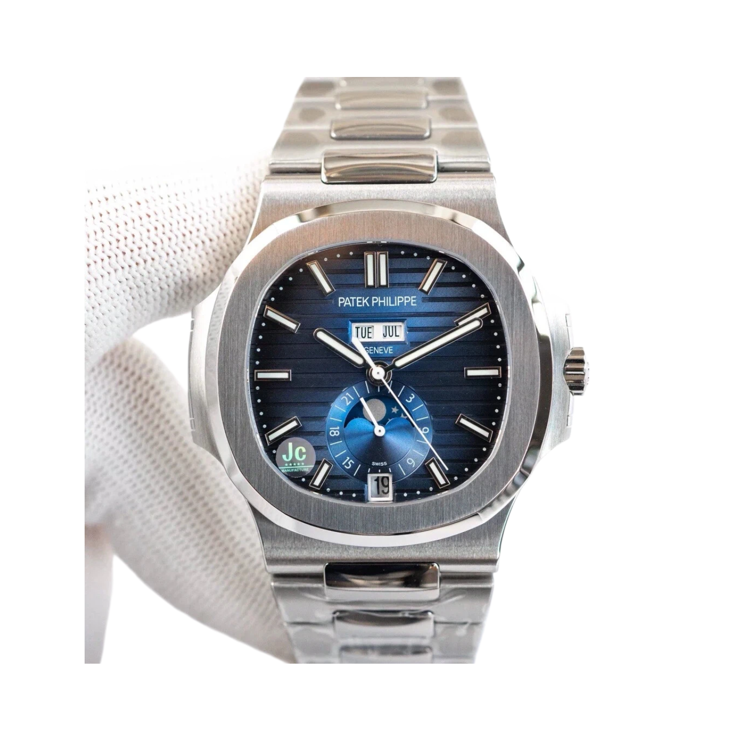 يناسب المعصم تمامًا، وكل وصلة فولاذية مرصعة بماسة ثلاثية الأبعاد أصلية.